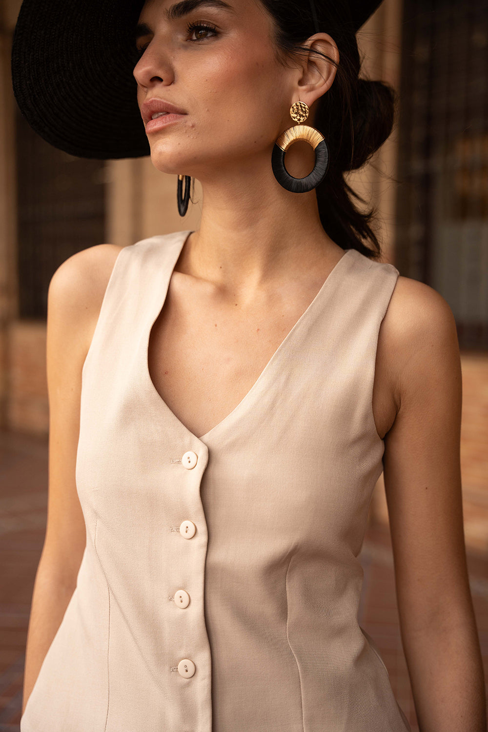 - Chaleco de sastrería con escote en pico