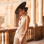 - Pantalón de tiro alto y pata ancha con caída fluida