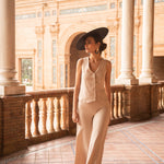 - Tejido ligero con movimiento en color beige arena