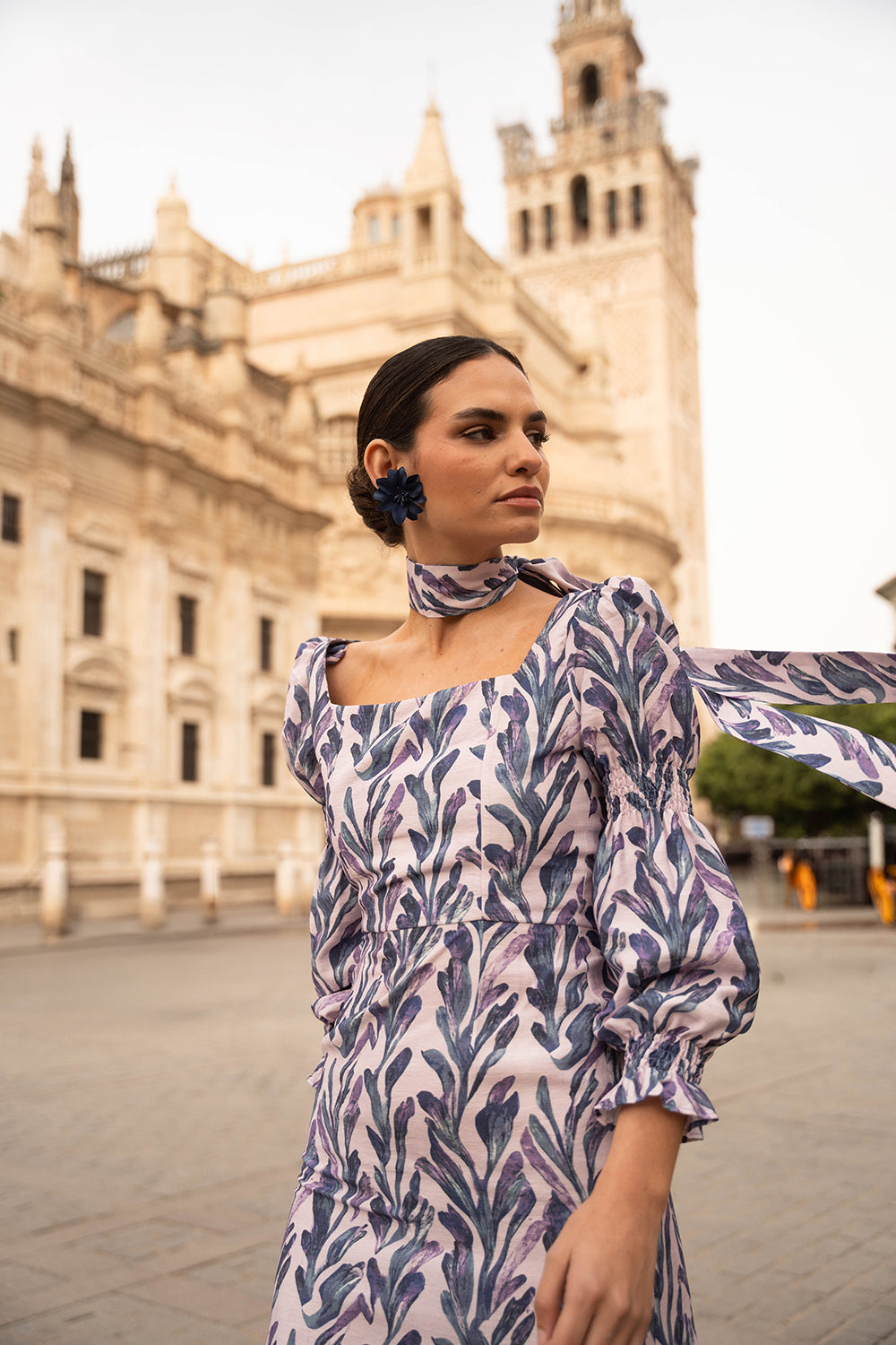 • Estampado de maxi flor en tonos lilas y azules