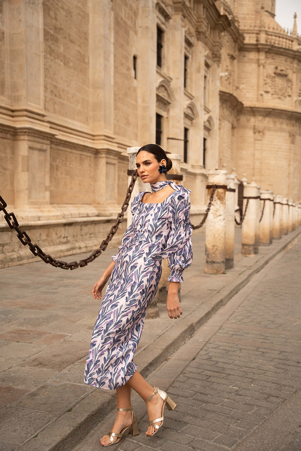 • Vestido largo con manga larga ajustable
