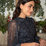 • Blusa de tul con cuello en uve y detalle de frunce central