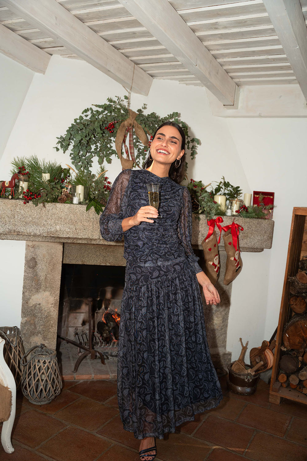 • Con ajuste entre la cintura y la cadera y vuelo a partir de la cadera