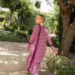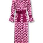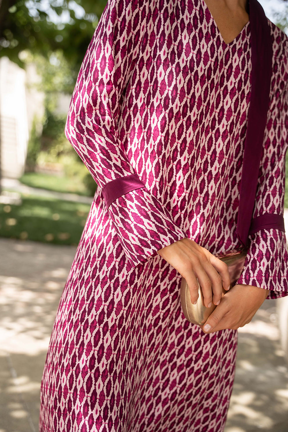• Además, la manga es acampanada y lleva el detalle de una tira en tono liso en la muñeca