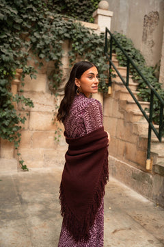 • Vestido de punto de seda con estampado geométrico en tonos coral