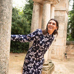 • Con corte en la cintura y un detalle de volante asimétrico en la falda