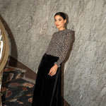 Velvet is back in season, one of our favourite fabrics. It elevates any look, whatever you wear. Combine it this Christmas with our blouse or a jumper and boots to welcome your guests in comfort and elegance at your Christmas Eve dinner.