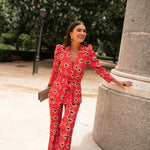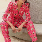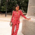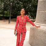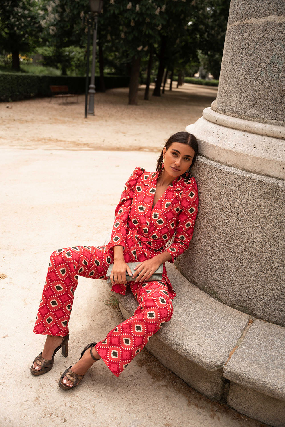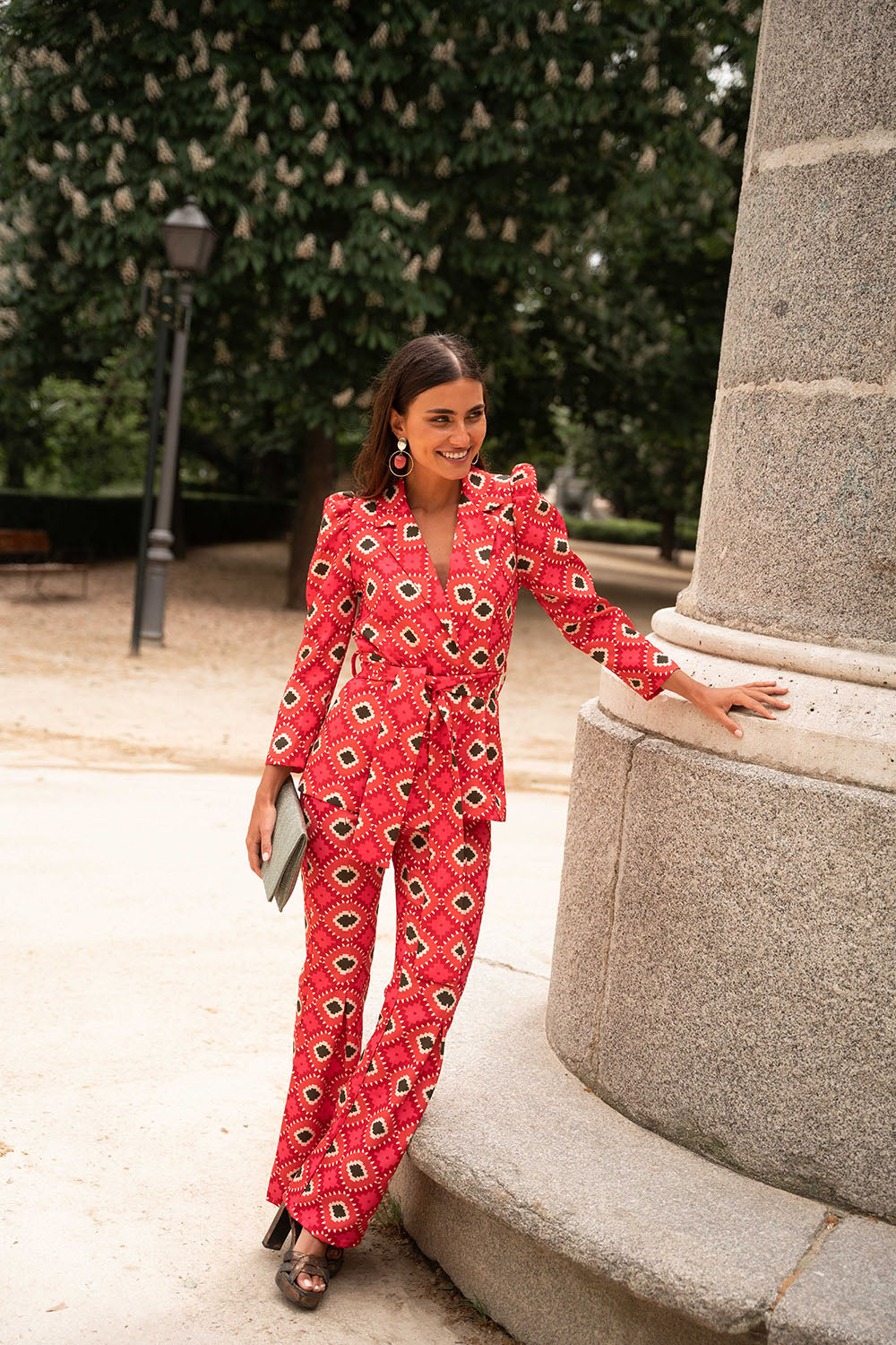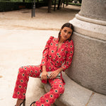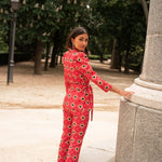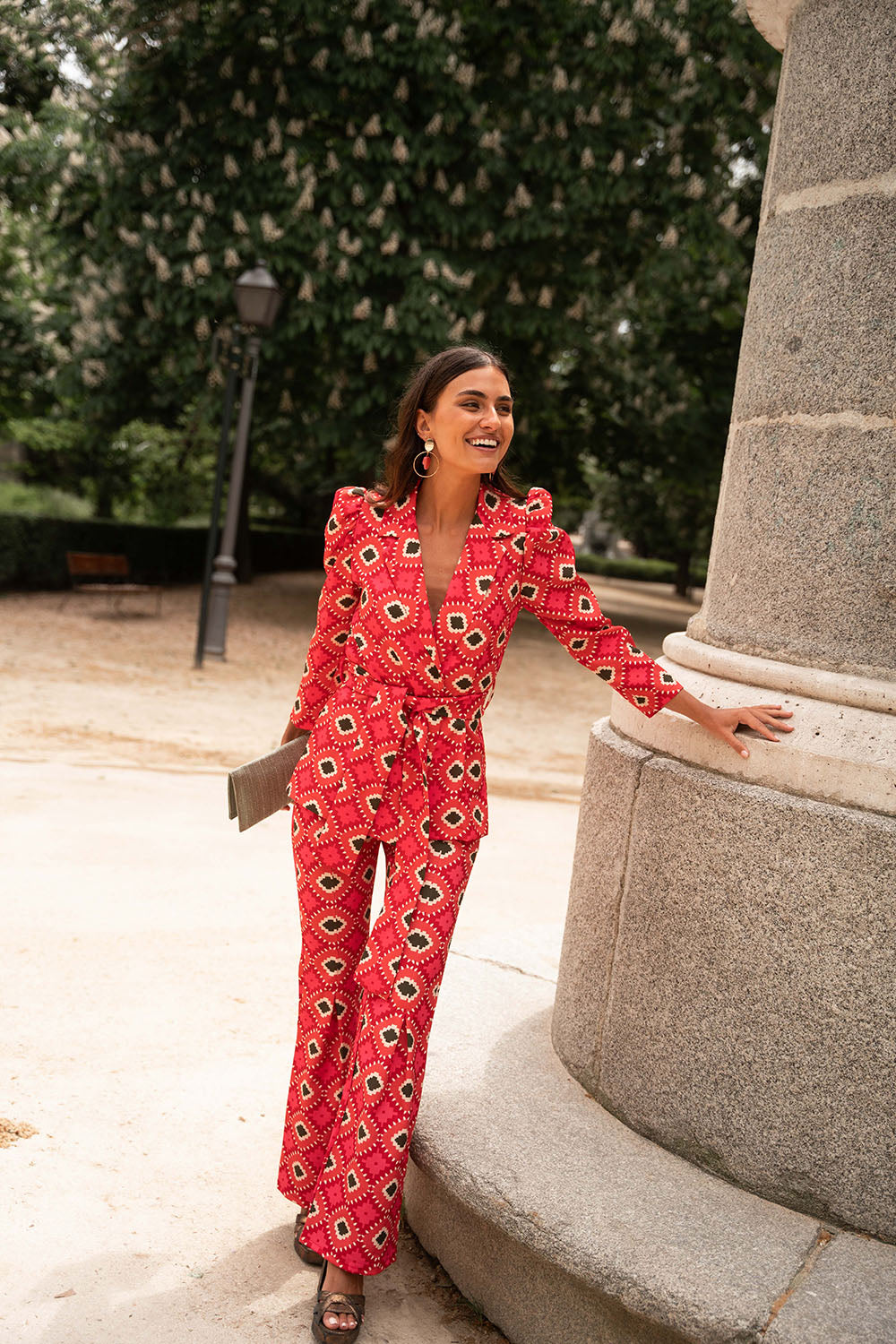 • Geometric print in red with green details