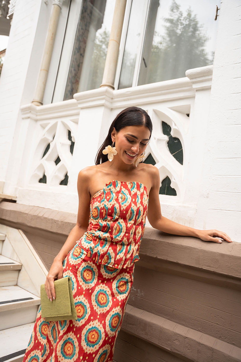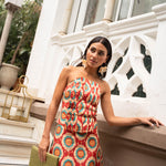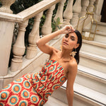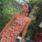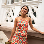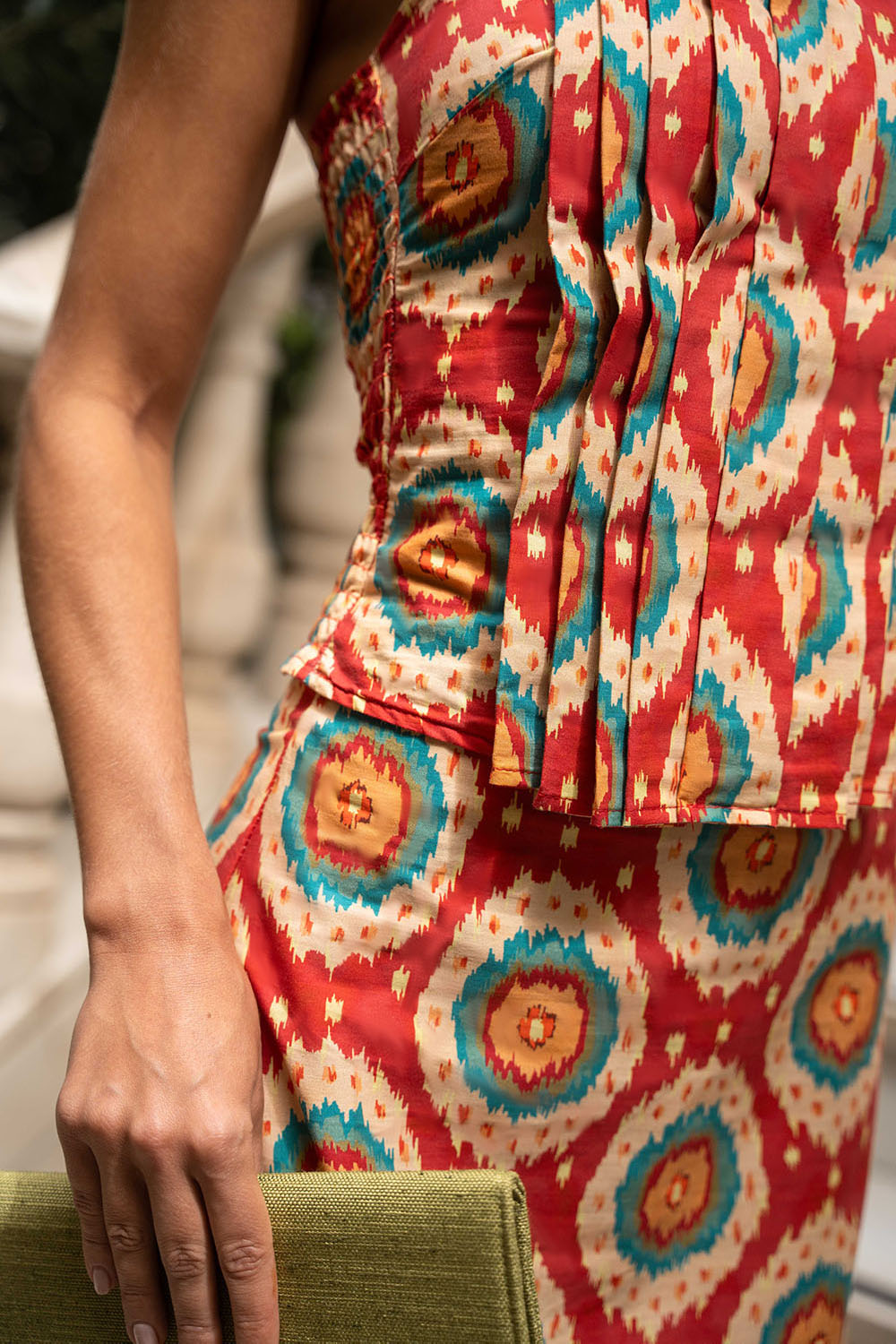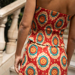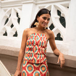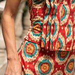 • Geometric print in red tones with detail
