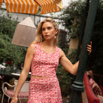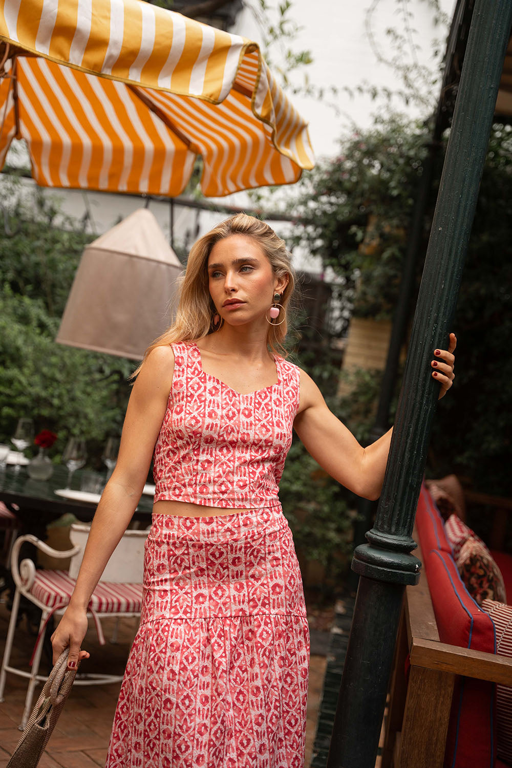 • Geometric print in pink tones