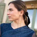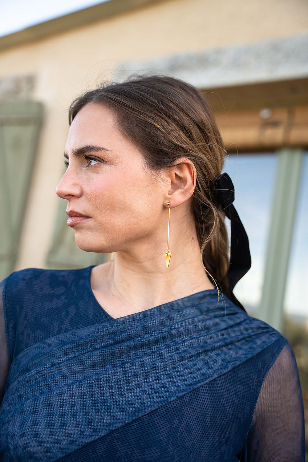 • Long gold-tone stainless steel earring