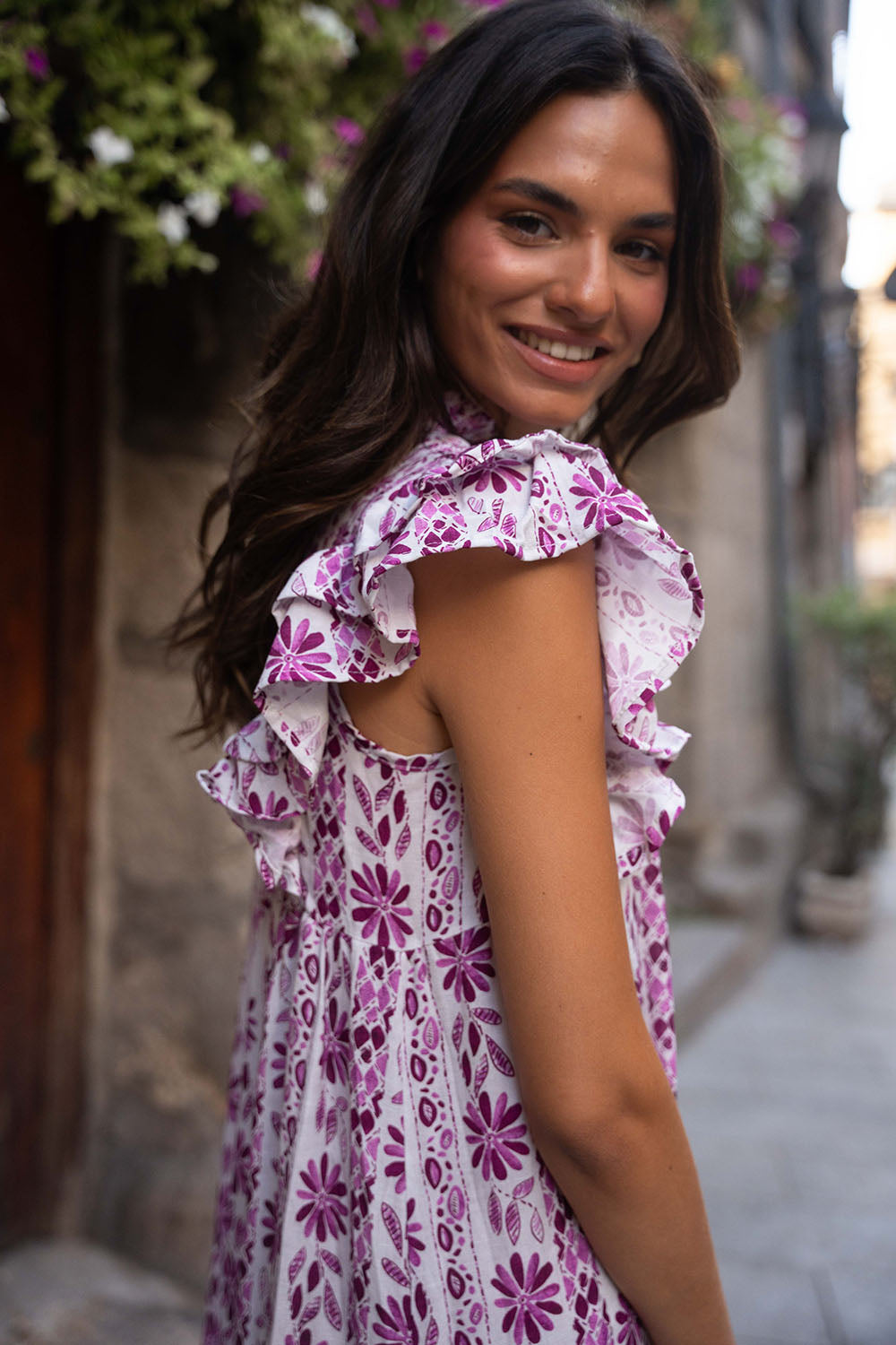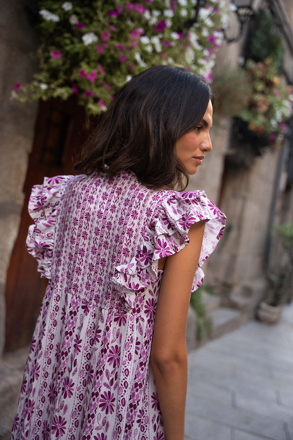 • Detalle de volantes en hombros y falda.