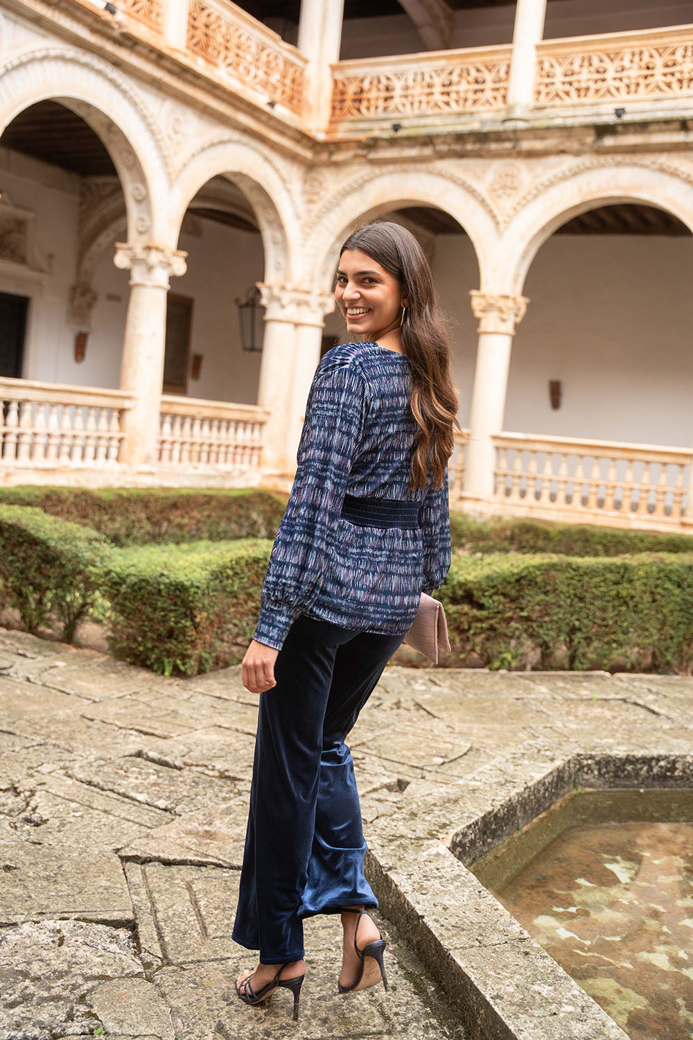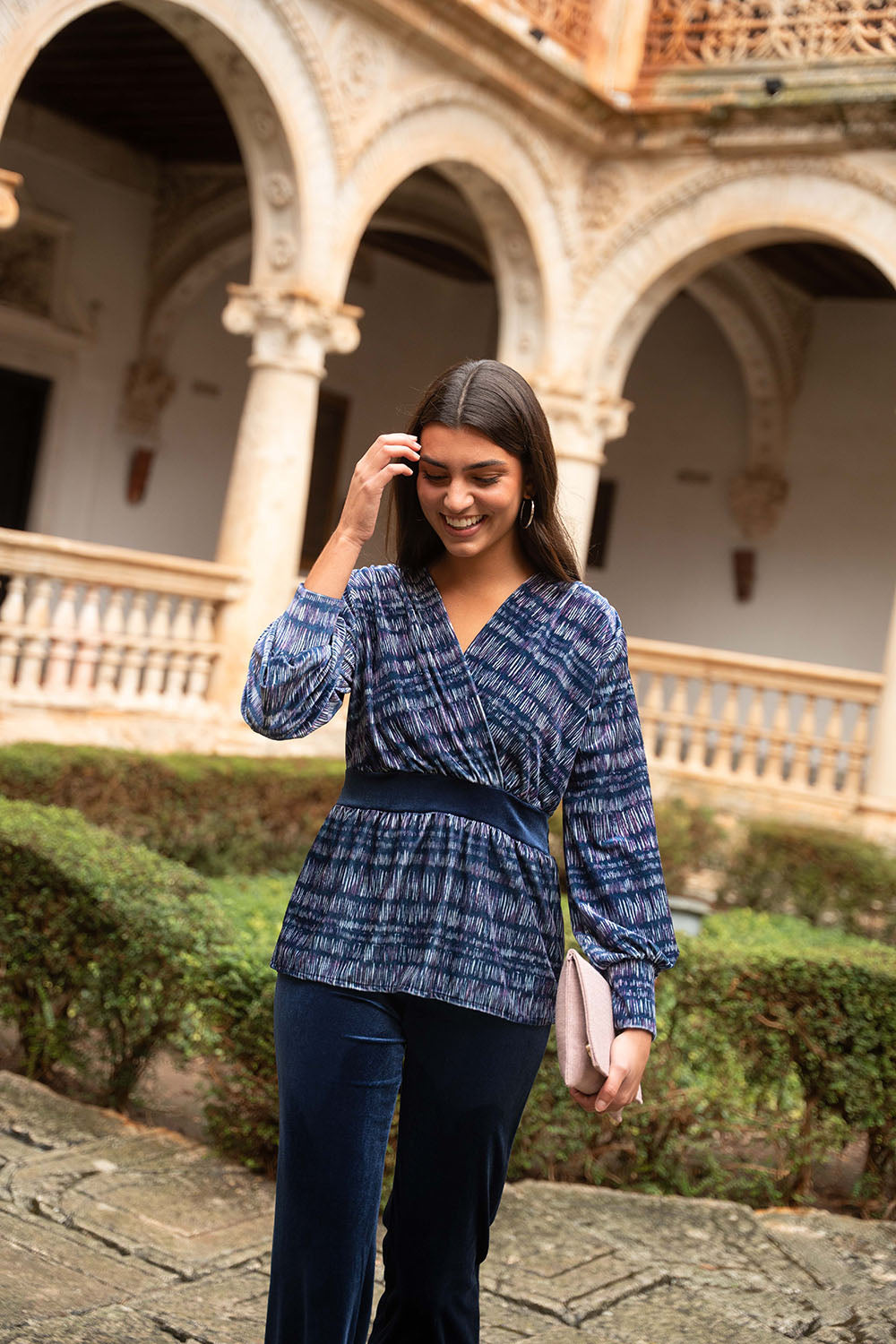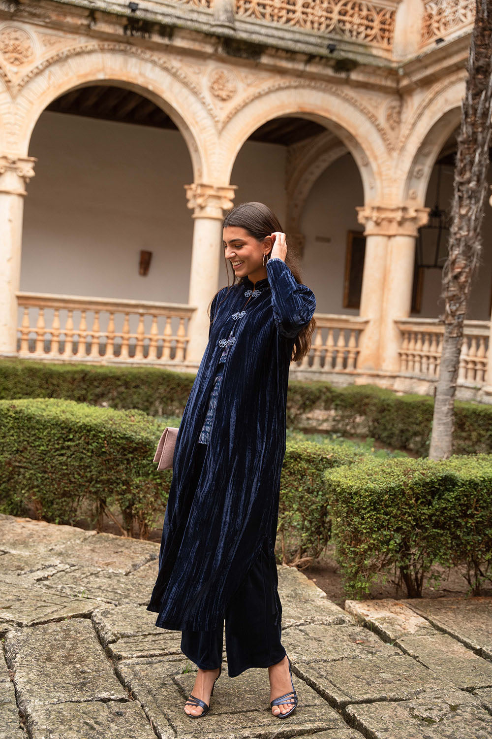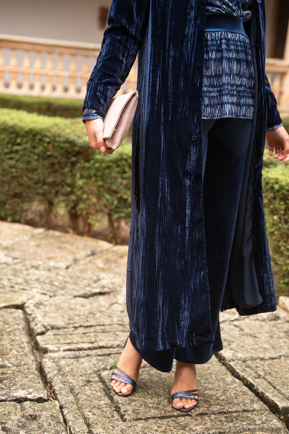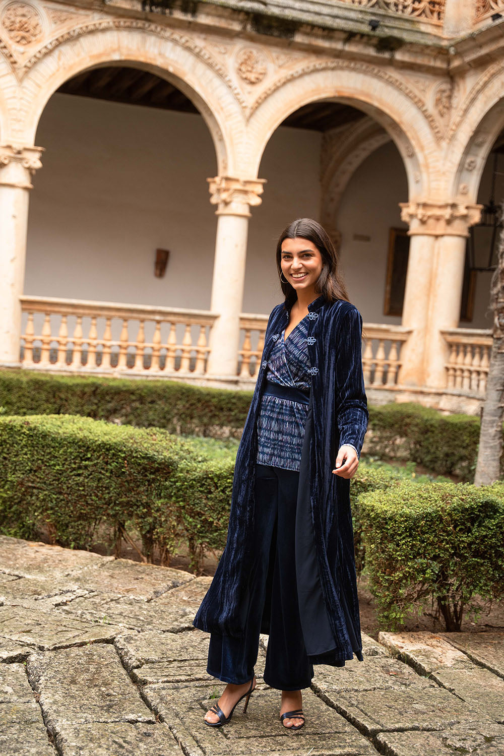 • Terciopelo liso en tono azul marino