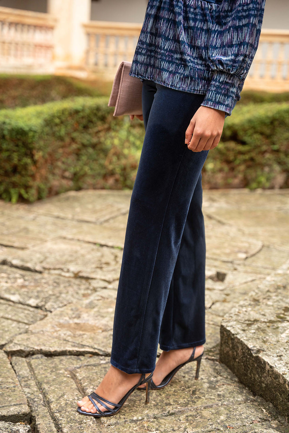 • Pantalón recto de terciopelo con un toque de elástico.