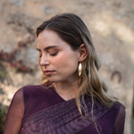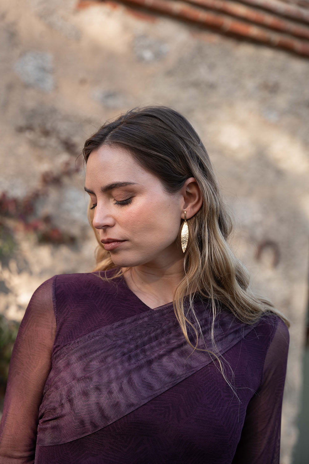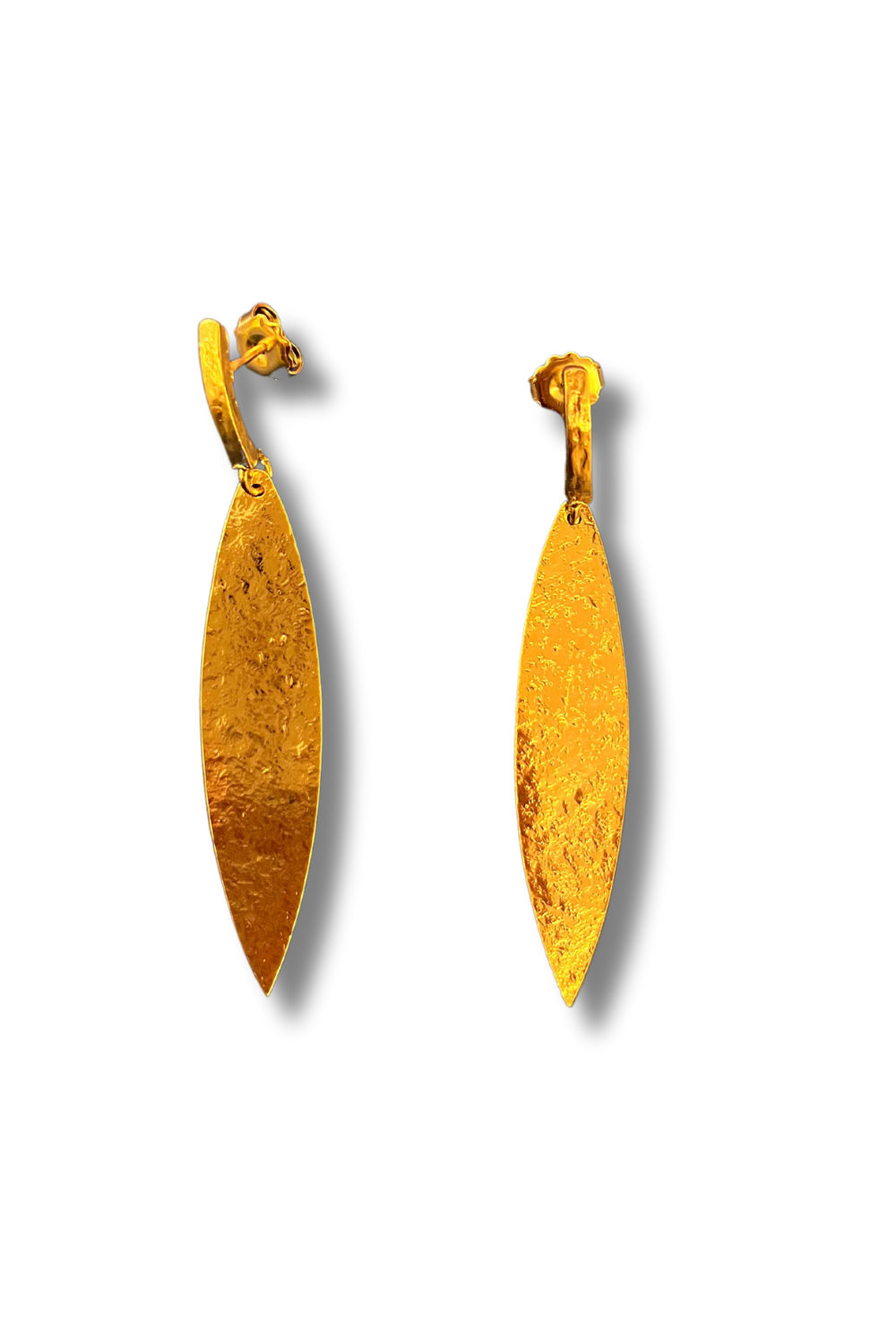 • Pendiente largo en forma de hoja en tono dorado de acero inoxidable
