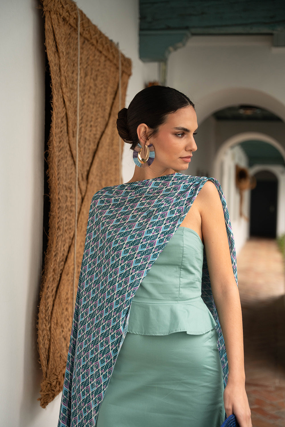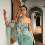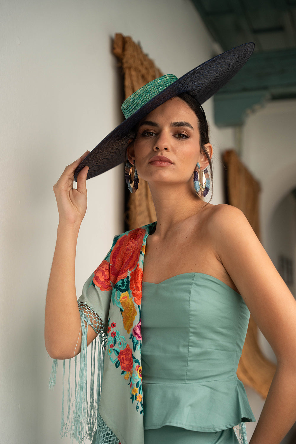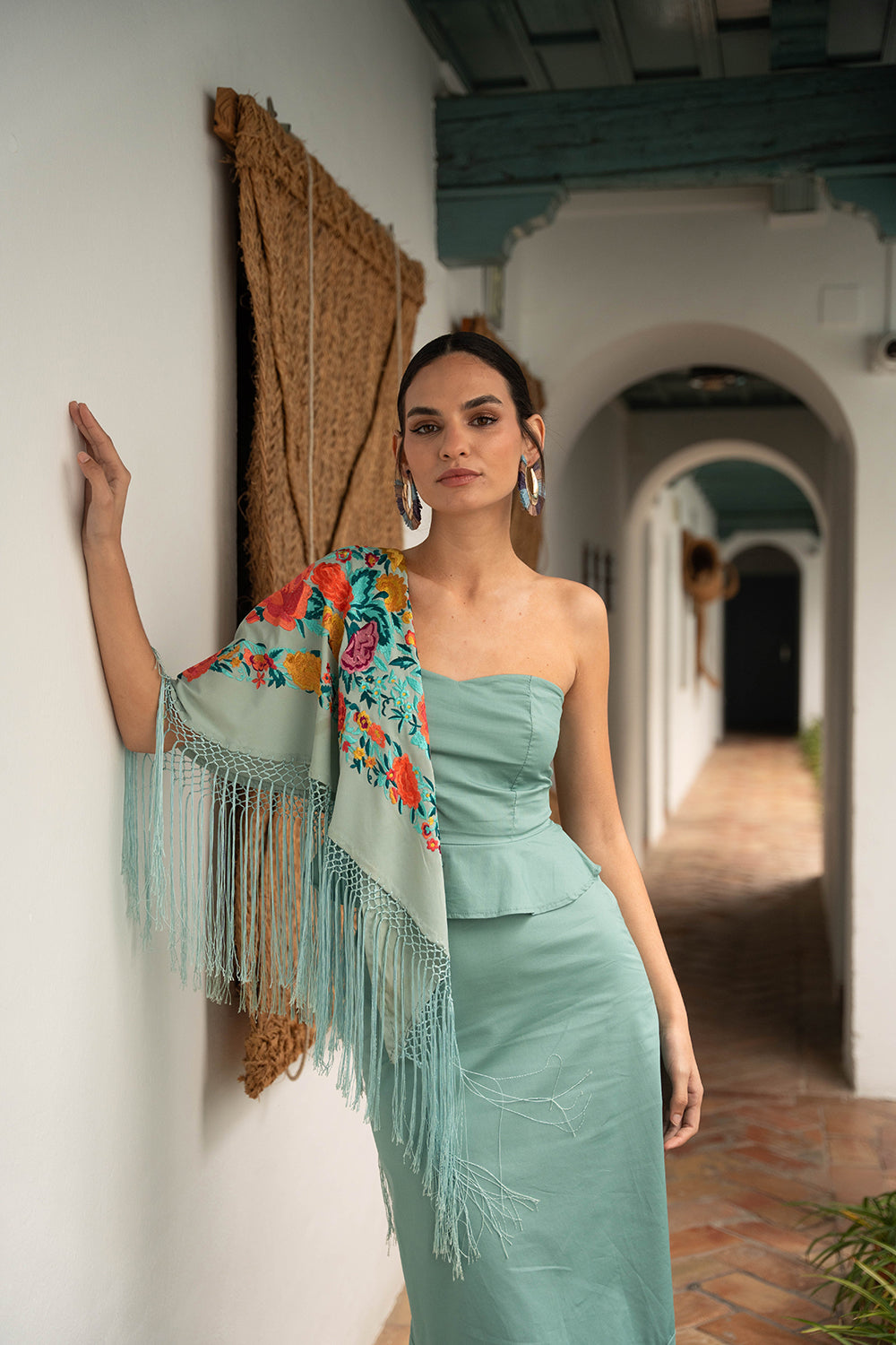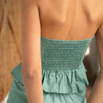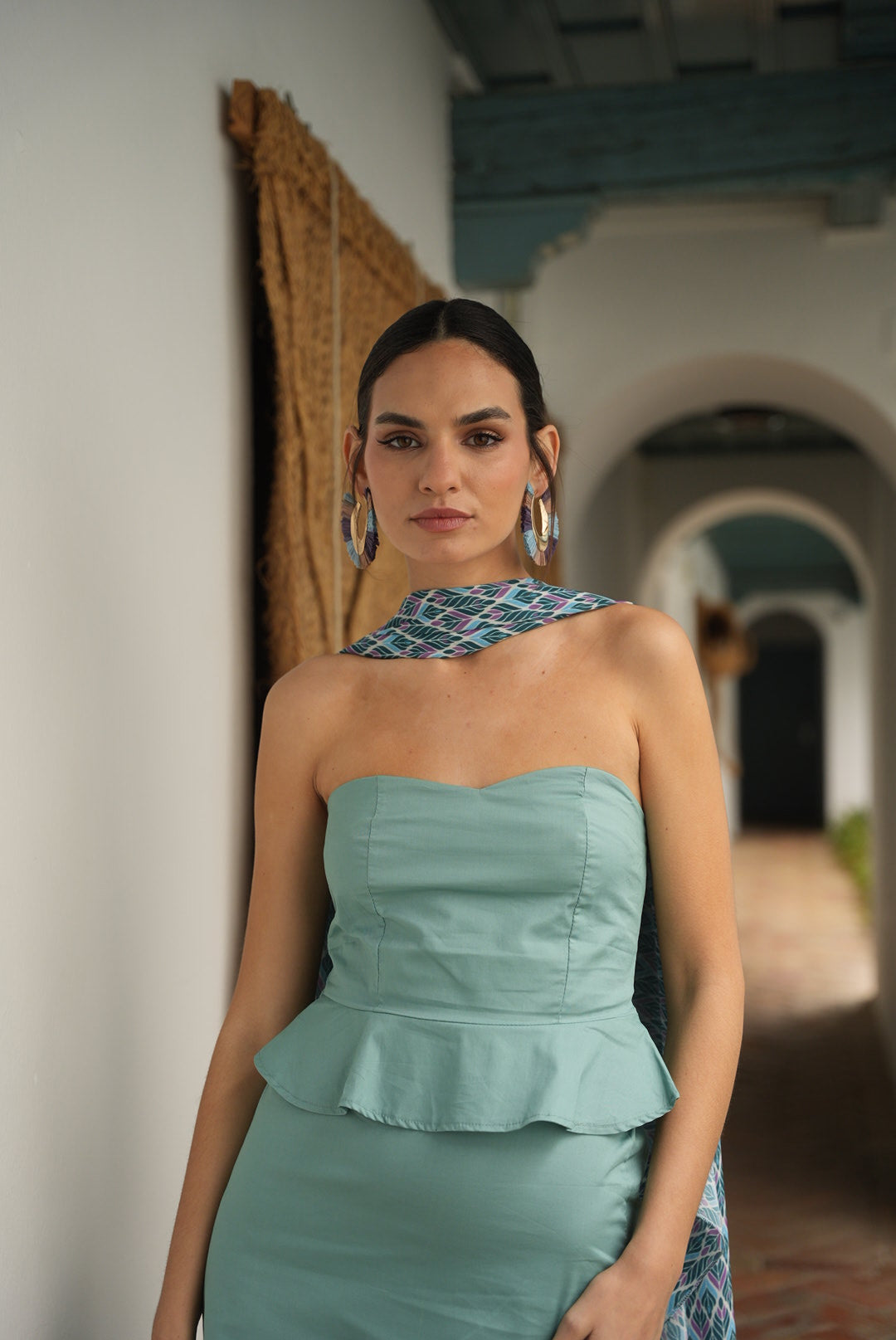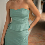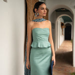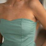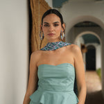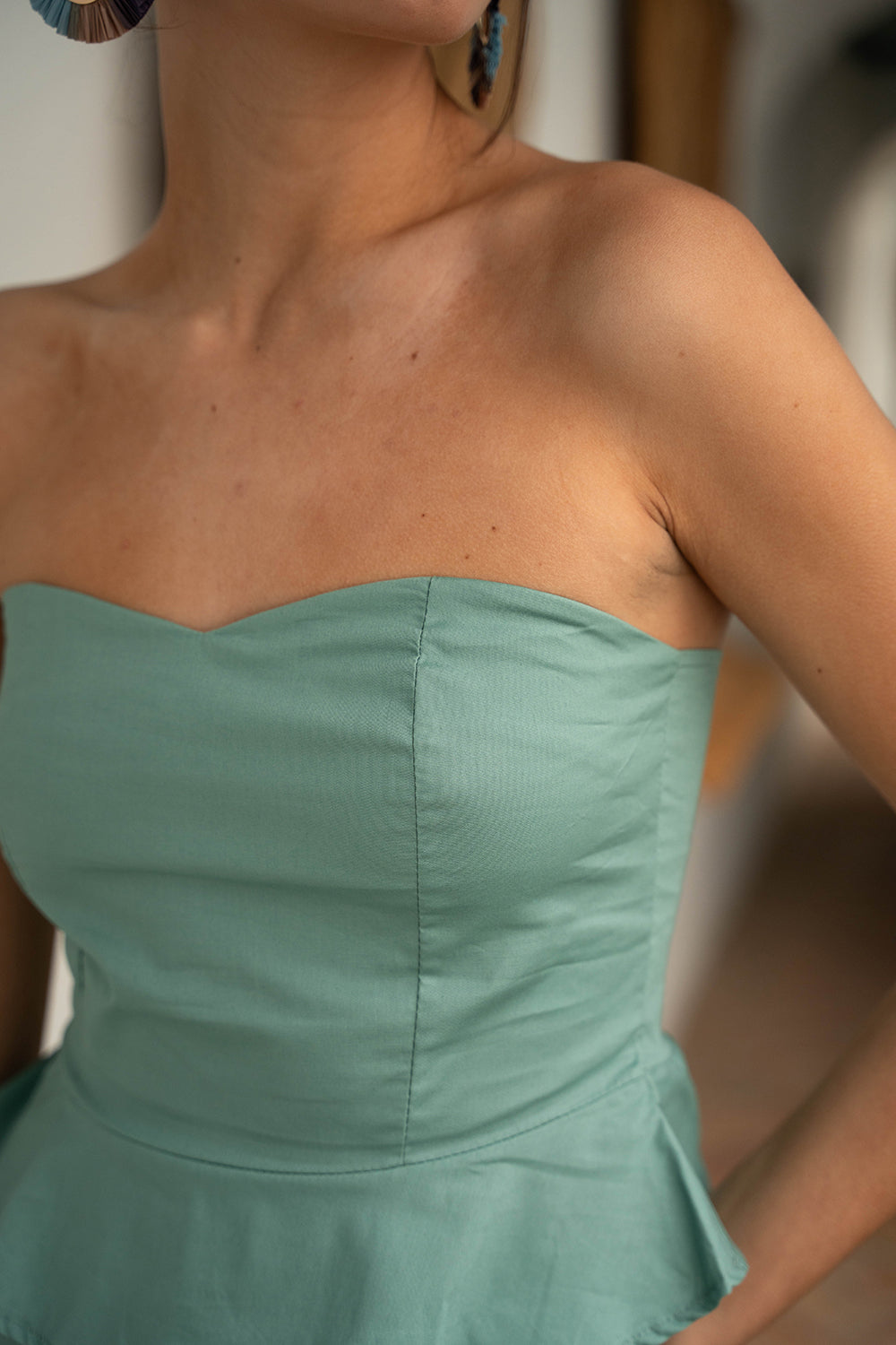 - Top de corte palabra de honor con escote corazón en tono azul verdoso