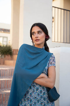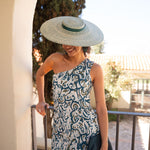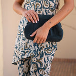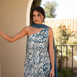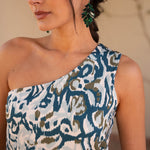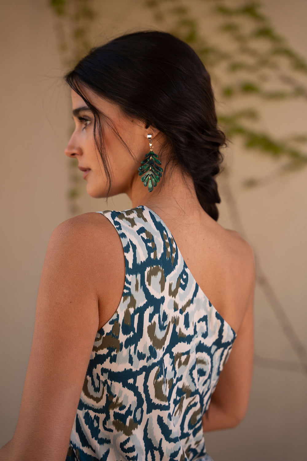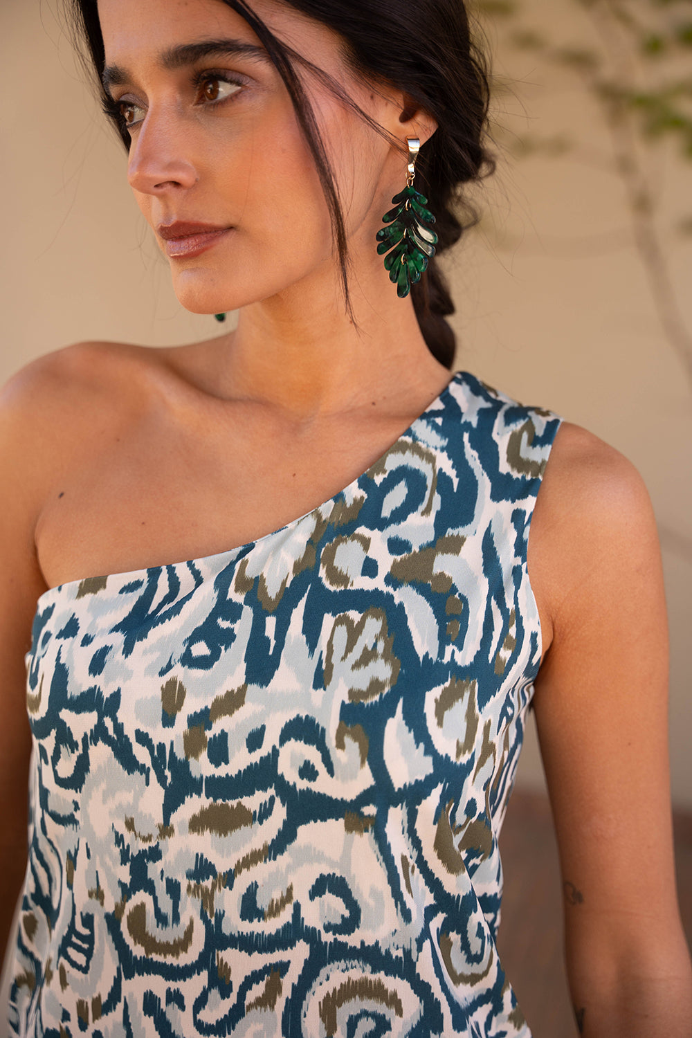 - Estampado abstracto en tonos azules, verdes oliva y crema