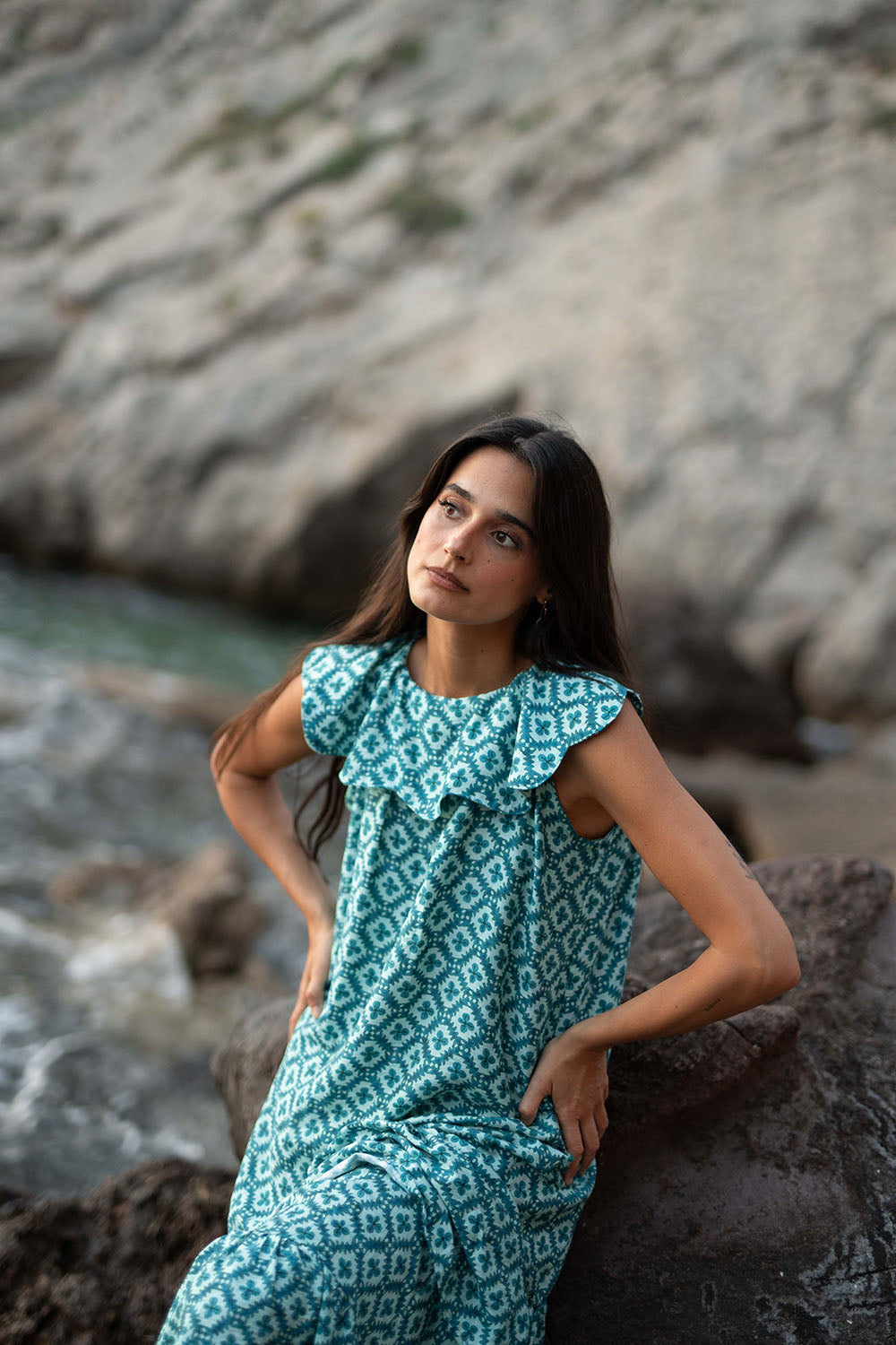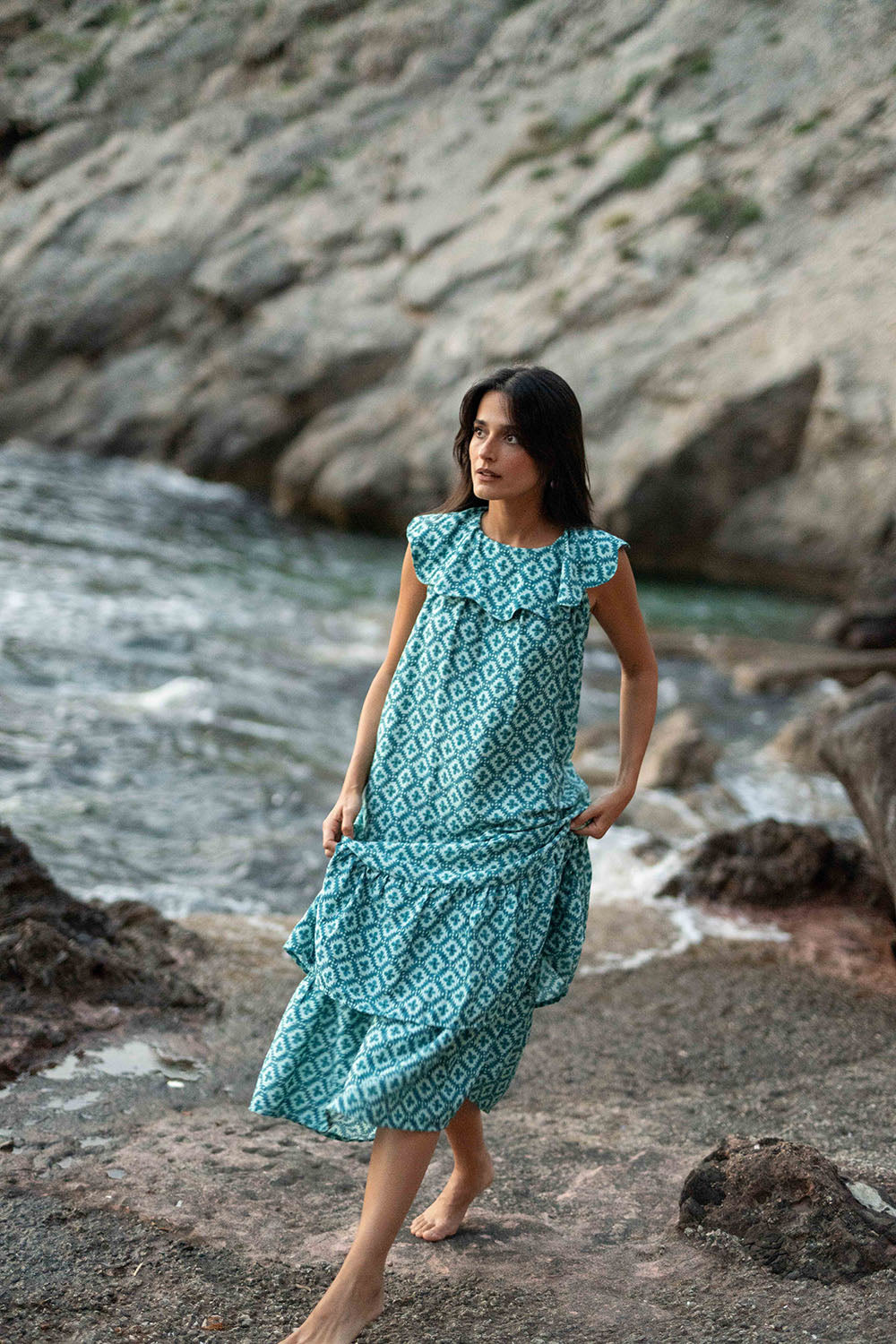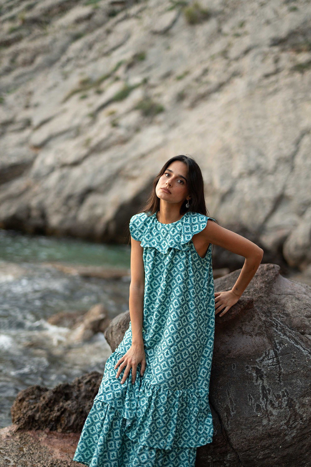 Un vestido cómodo y súper romántico para tus looks de verano. Con su cuello bebé y su doble volante en el bajo, sólo necesitarás unos buenos accesorios para robar todas las miradas.