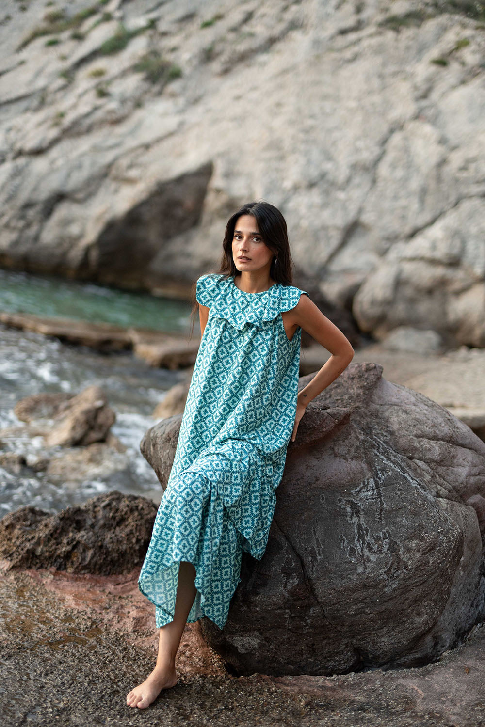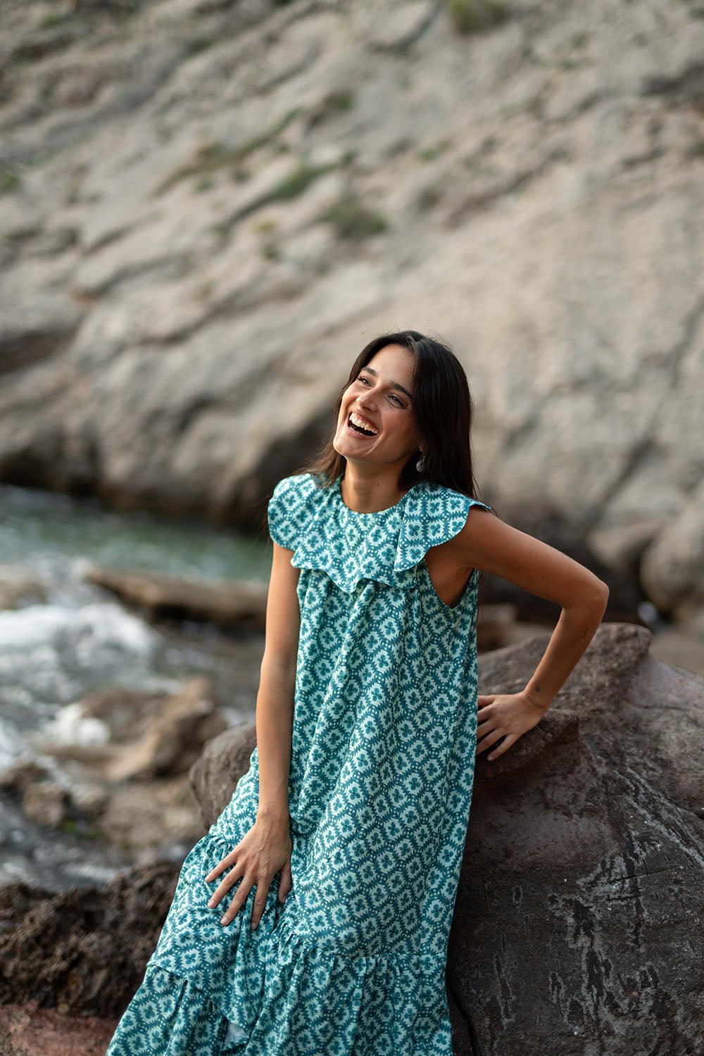Si dudas entre dos tallas, te recomendamos una menos, ya que el vestido es suelto y tiene mucho vuelo.