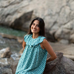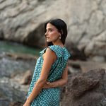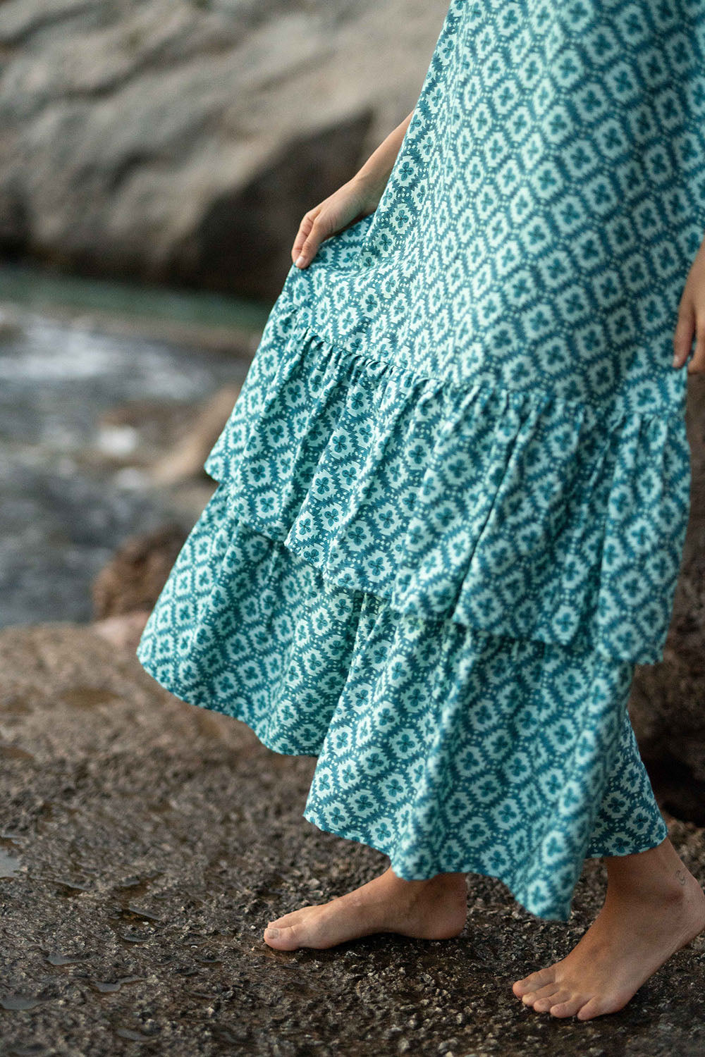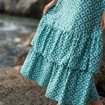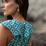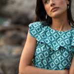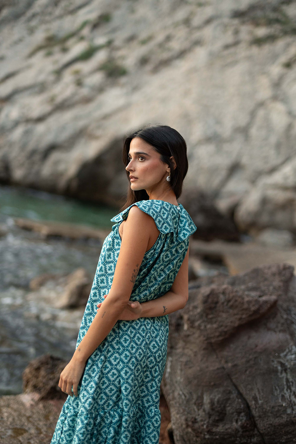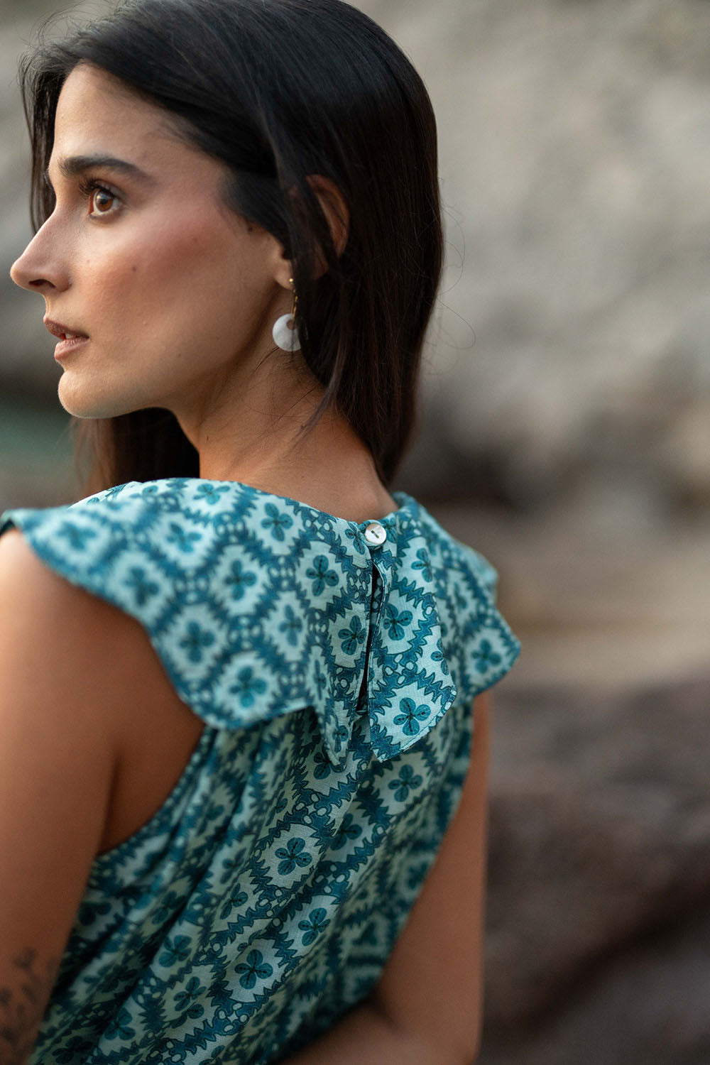 • Su estampado de flores indias en tonos turquesa le da un estilo veraniego y relajado.