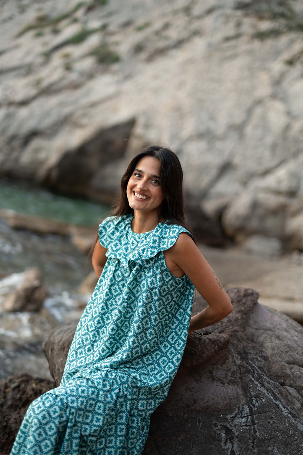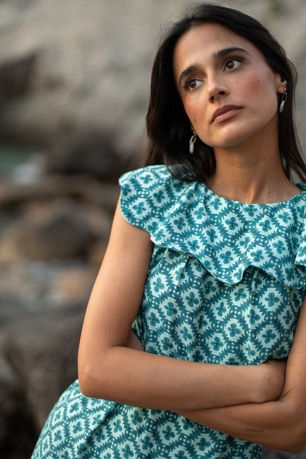 • Su especial cuello de bebe con cortes ondulados le da un toque ideal para ir al más puro estilo portugués.