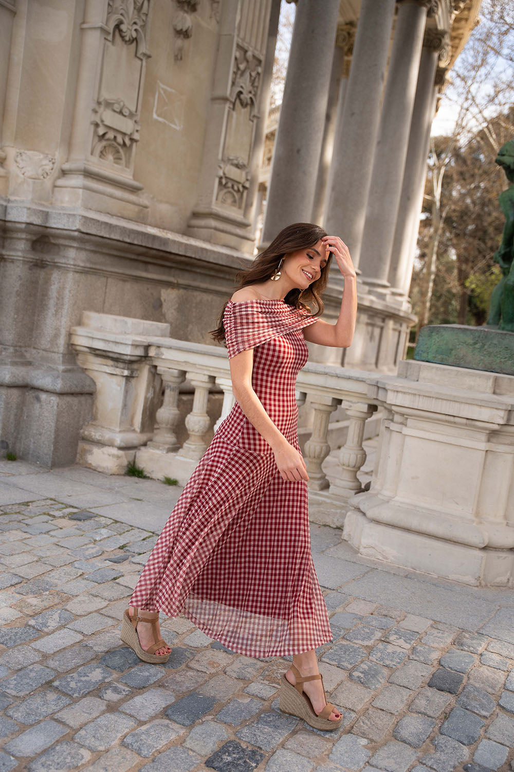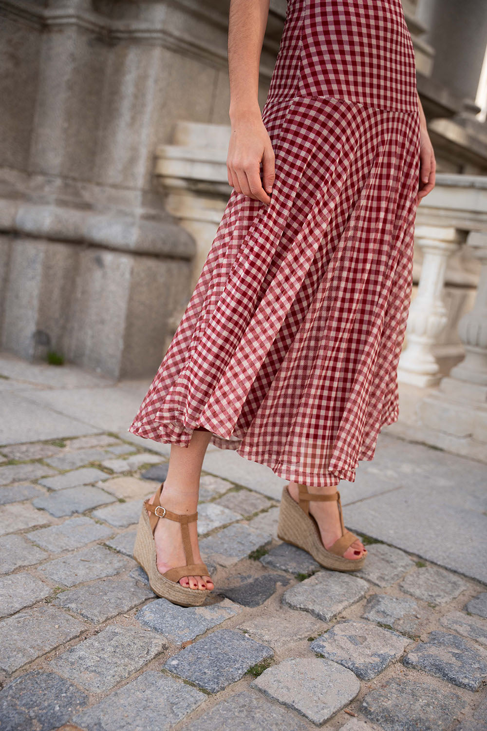 • Estampado de vichy en tono granate