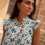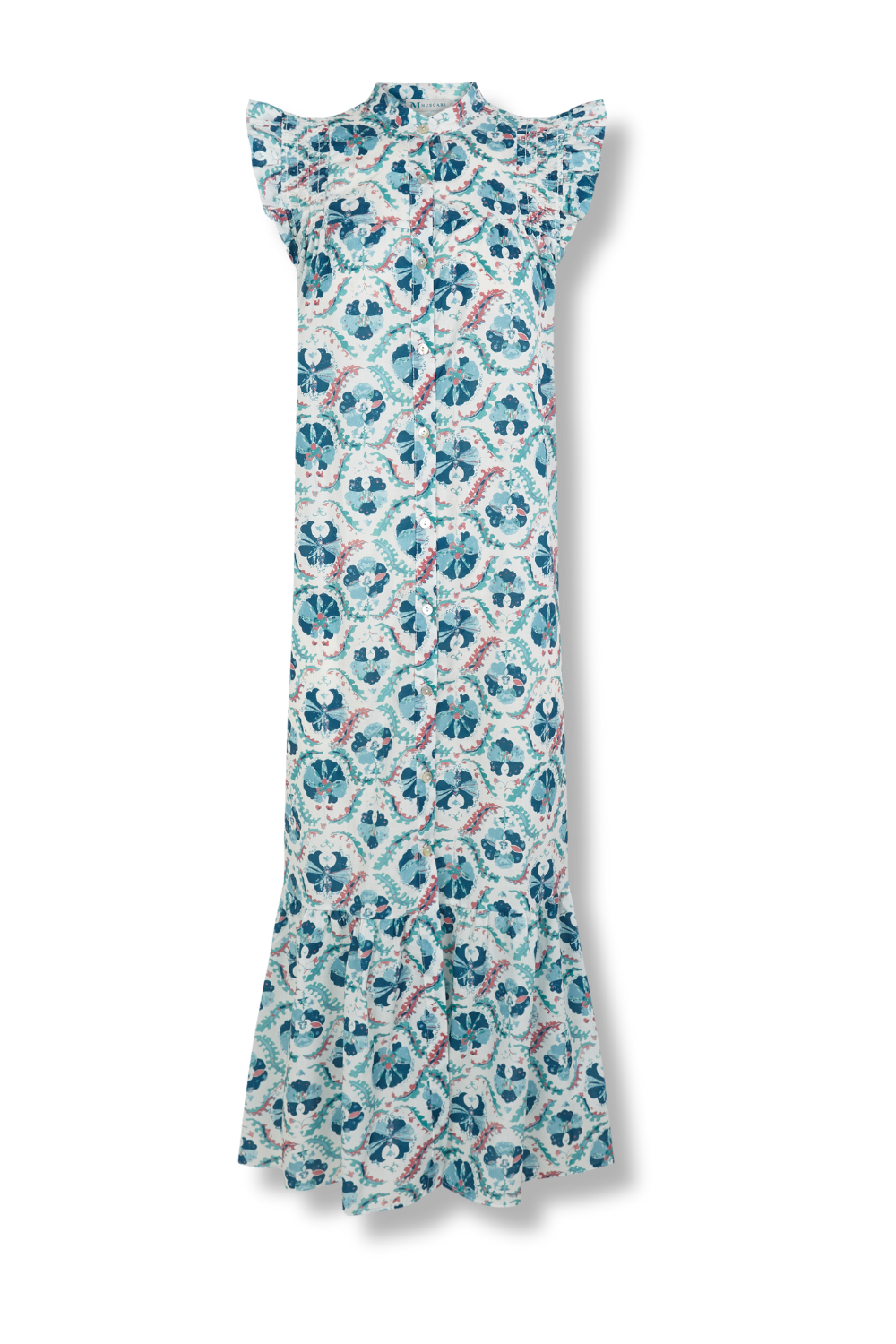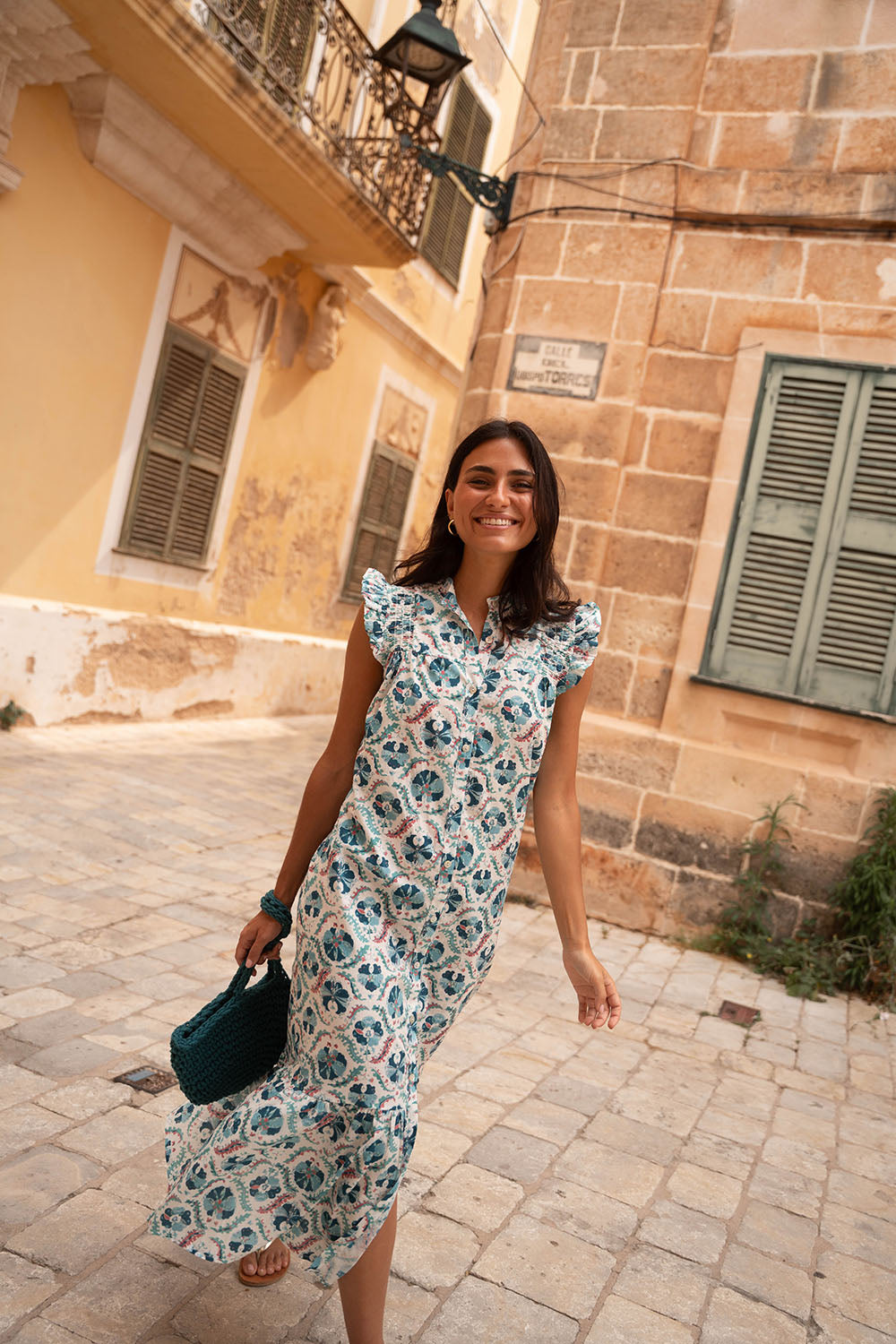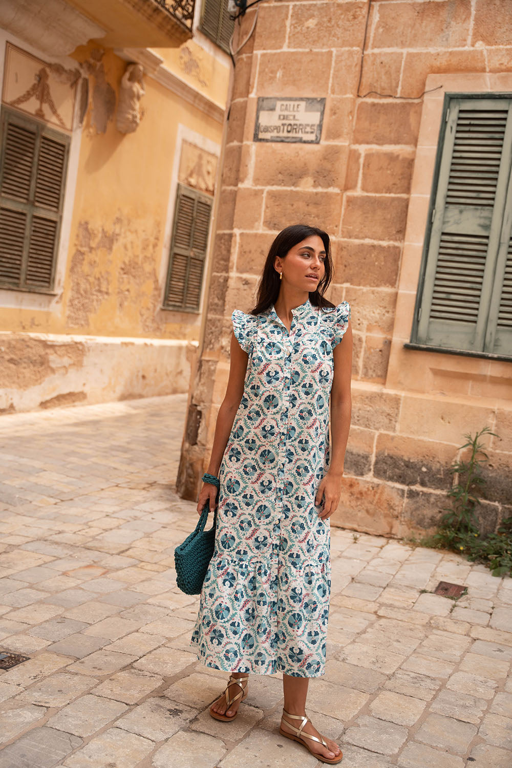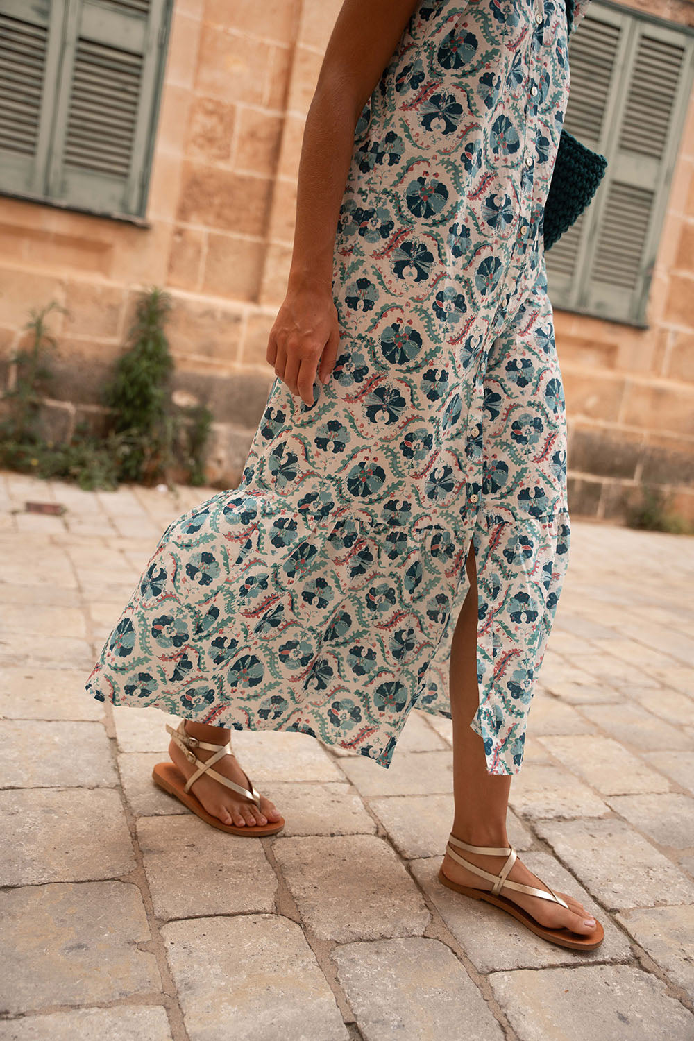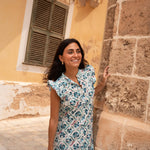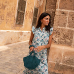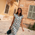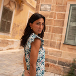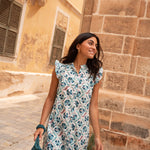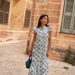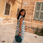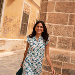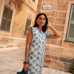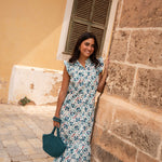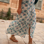 • Vestido de corte midi con estampado indio en tonos azules